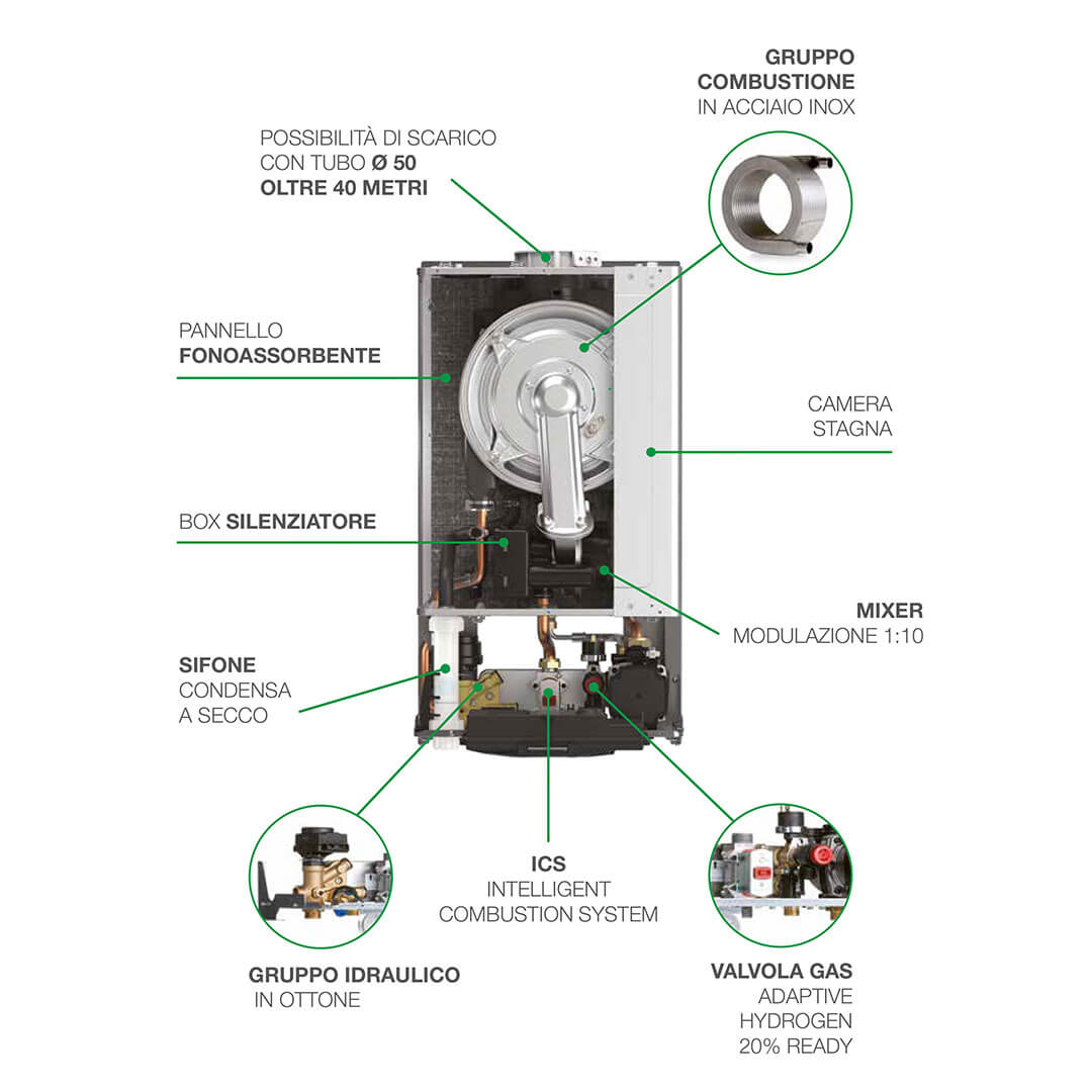 • ICS (Intelligent Combustion System) che garantisce una combustione perfetta in tutte le condizioni
